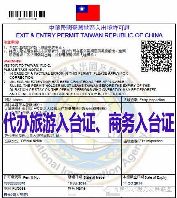 7. F签注:持国务院台湾事务办公室经济局“关于应邀往来台湾立项批复”赴台进行经贸、交流活动。