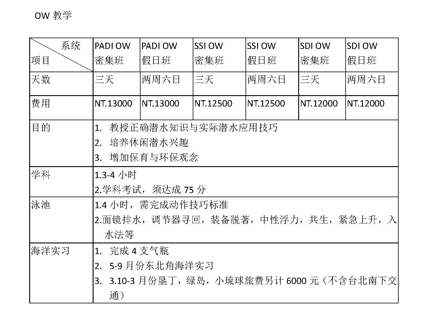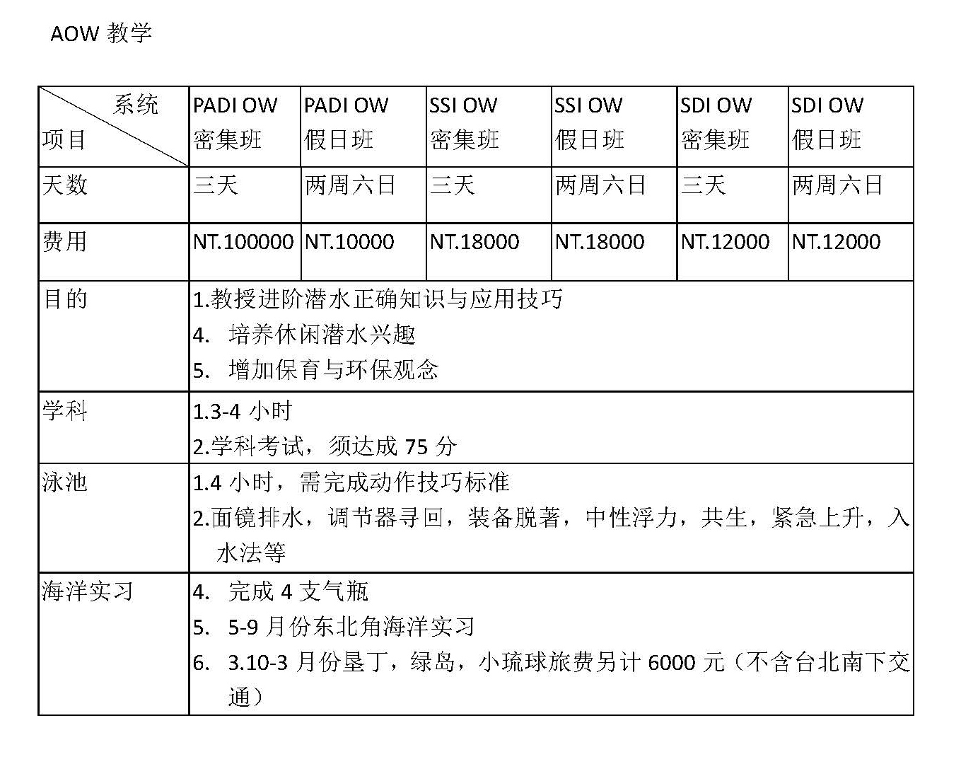 OW与AOW系列课程,台湾潜水,绿岛,垦丁,兰屿,潜水,专业潜水,台湾潜水协会,两岸潜水观光发展联盟,结伴国外潜水,兩岸觀光發展聯盟