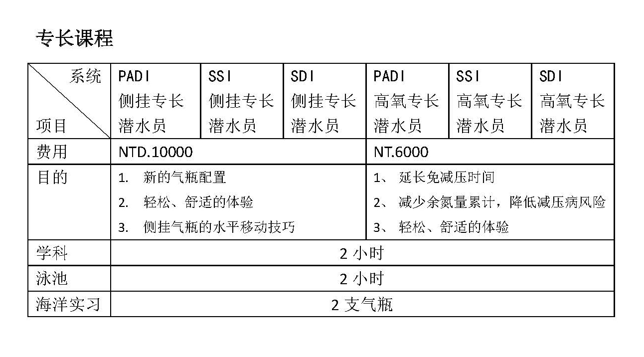 专长课程,台湾潜水,绿岛,垦丁,兰屿,潜水,专业潜水,台湾潜水协会,两岸潜水观光发展联盟,结伴国外潜水,兩岸觀光發展聯盟